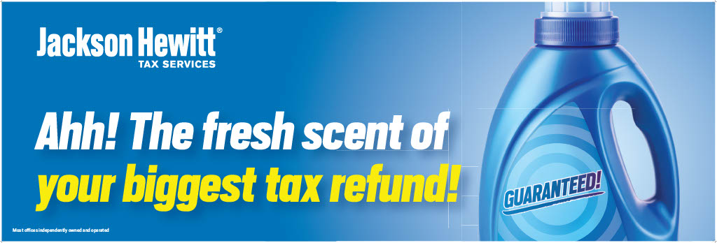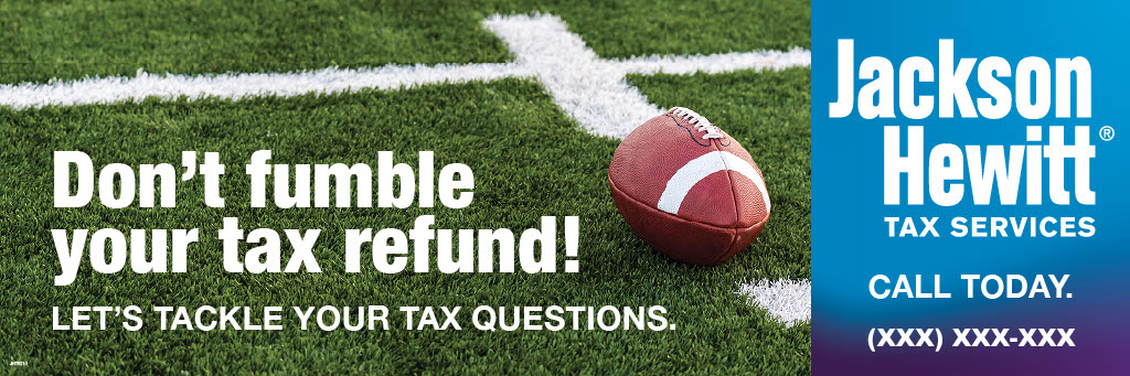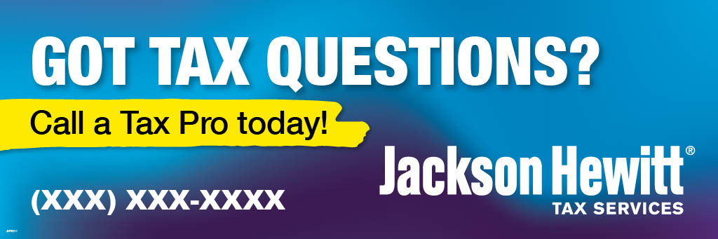 Mesh banners are excellent for outdoor usage, especially in areas with strong winds. Your Jackon Hewitt banner is printed one-sided in vivid full-color, on durable 10-ounce, 30% perforated vinyl mesh with hems on all sides and grommets applied every two feet for easy display.